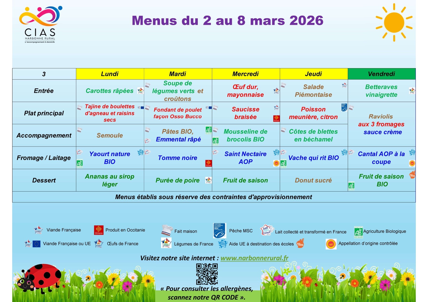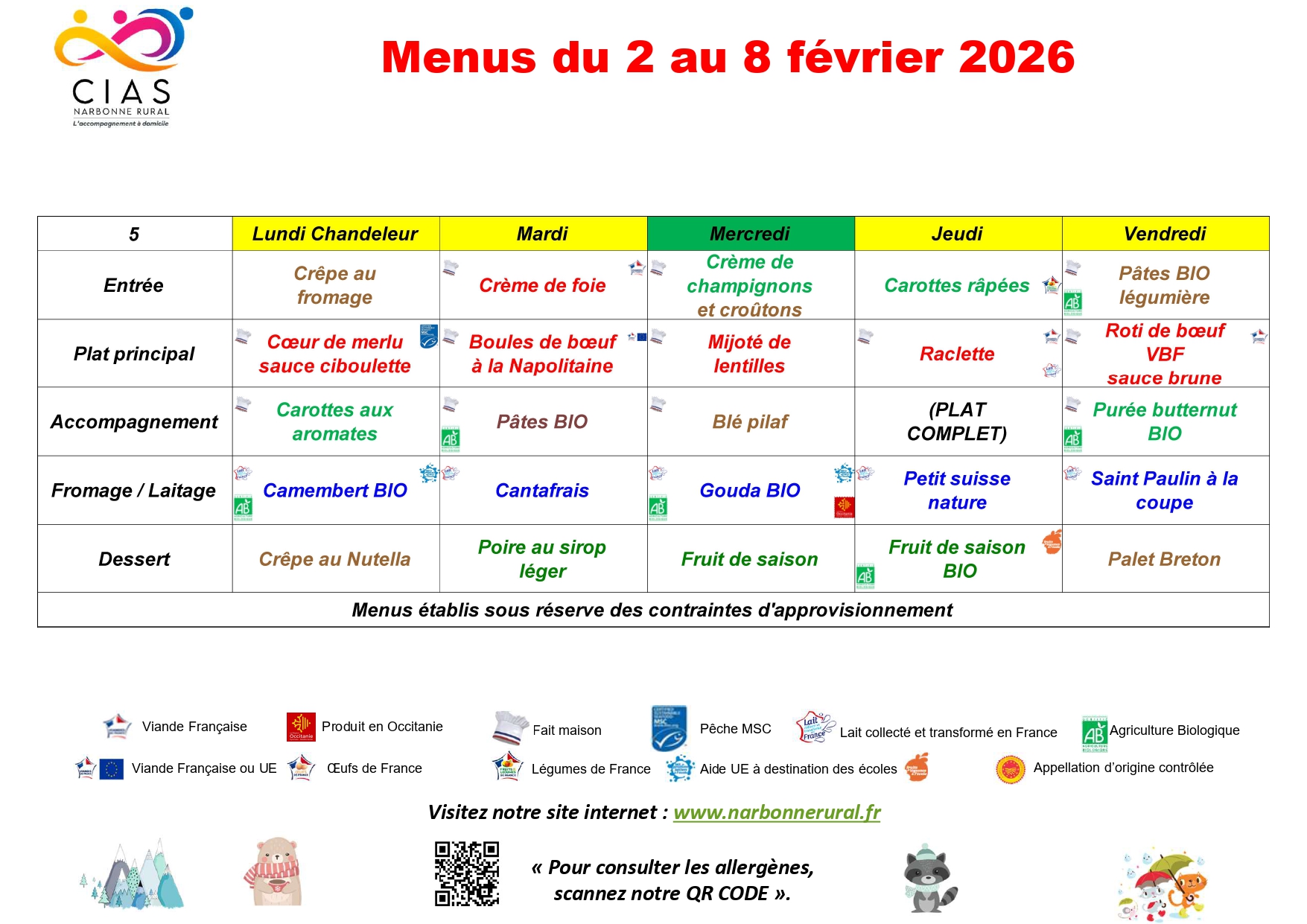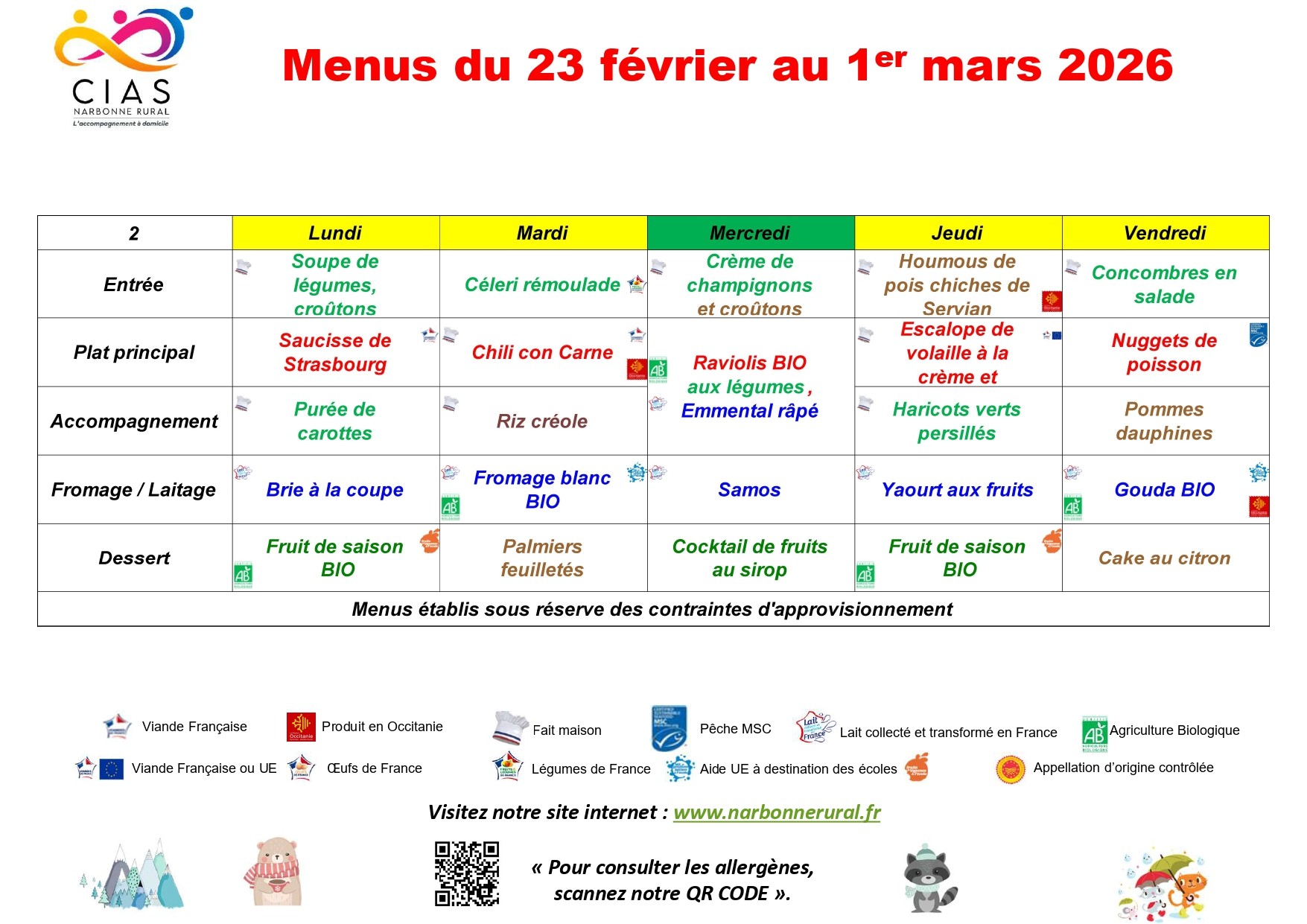MENU DE LA SEMAINE (en pdf)